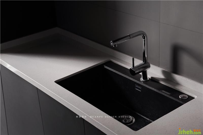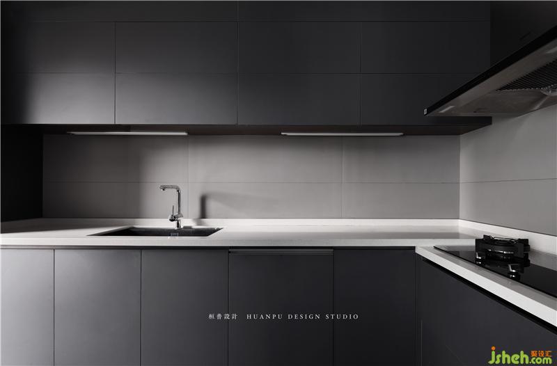黑白灰色調(diào),L型的櫥柜設置,把空間實用性發(fā)揮到極致。干凈整潔,仿佛是把雜志宣傳圖里的廚房搬回來了家。
