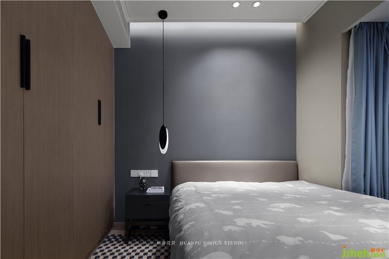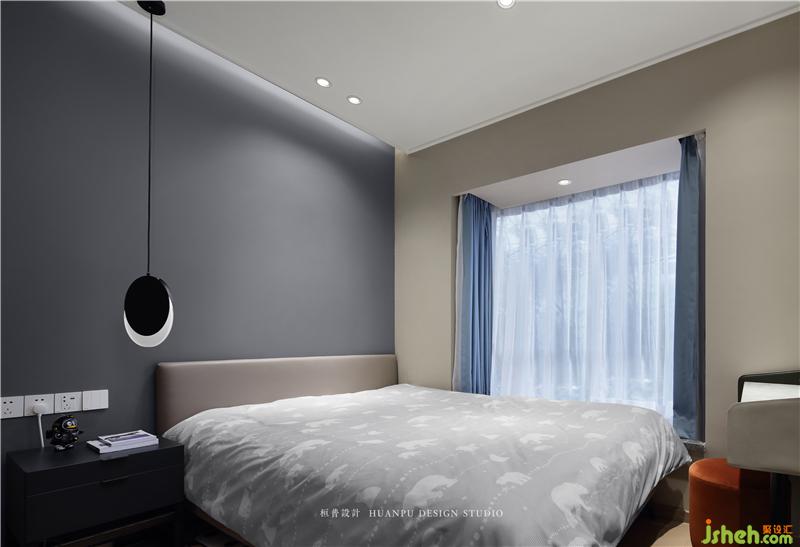 墻面是藍灰色和牙白色,給人一種穩(wěn)重又安心的感覺。而吊掛式的月牙燈,點綴了每個夜晚的星空。豐富的材質(zhì),低調(diào)的質(zhì)感,優(yōu)雅的基調(diào),構(gòu)建臥室不一樣的美好。