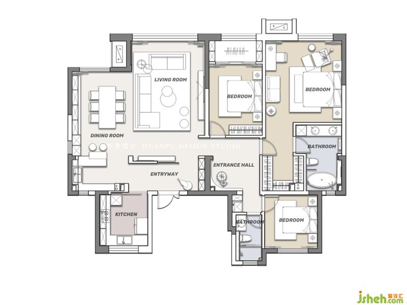 ?原戶型的贈(zèng)送面積沒有很好的利用起來,結(jié)構(gòu)無分區(qū)考慮,空間分隔零散。