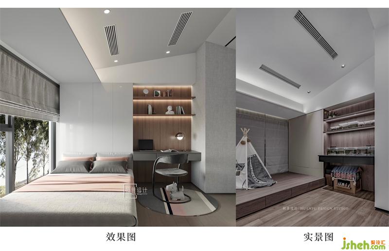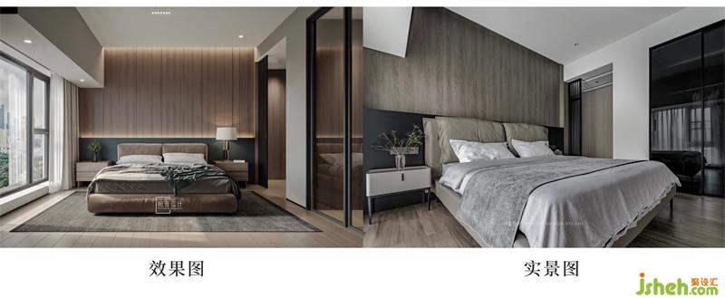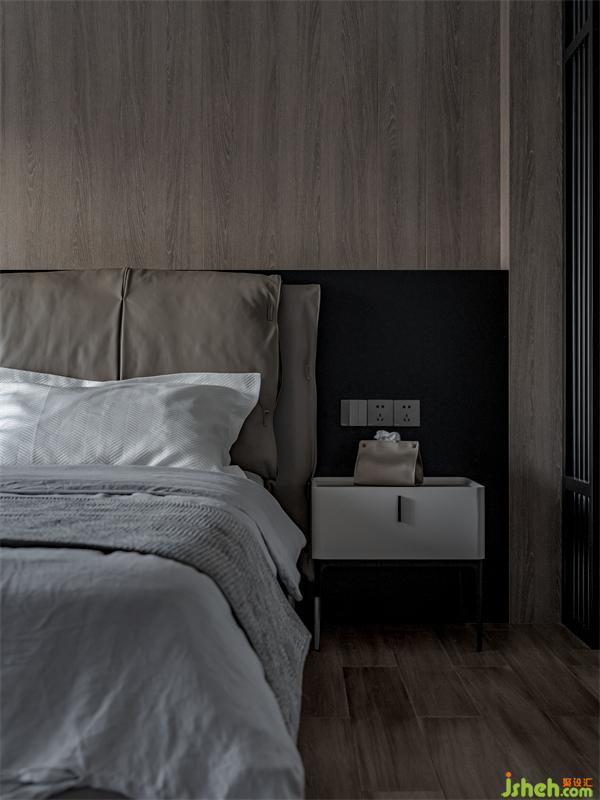 床品選擇了與木飾面相配的棕灰色,很適合長輩居住,有種獨特穩(wěn)重的氣質(zhì)。