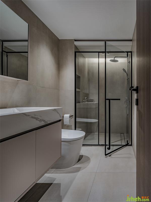 公衛(wèi)的盥洗盆與一層次衛(wèi)的盥洗盆是一樣的,采用斜面設(shè)計(jì),視覺上達(dá)到滿足。采用鏡柜設(shè)計(jì),依舊是無處不在的柜子,絲毫不擔(dān)心沒地方收納。