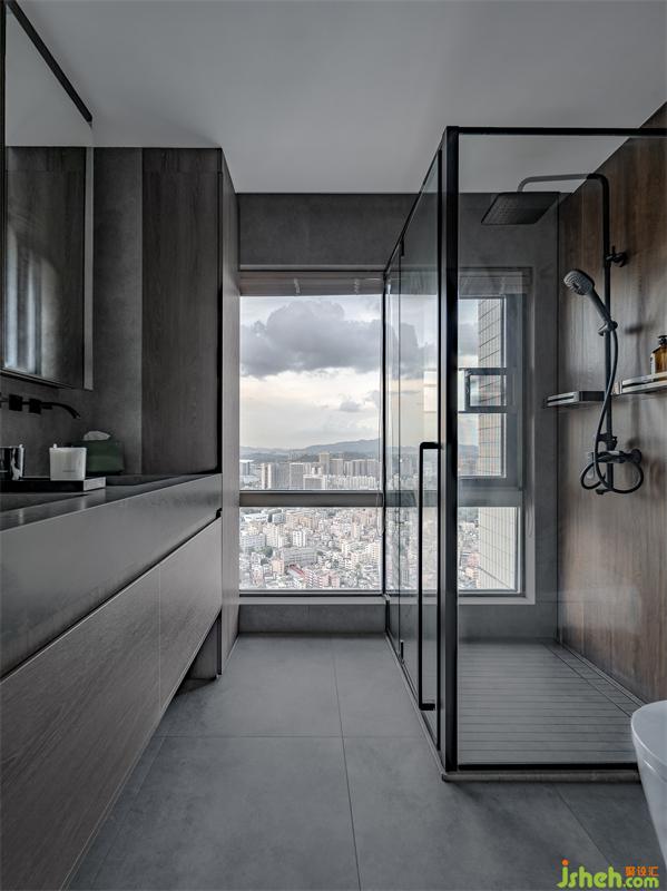 主衛(wèi)沒有安裝浴缸,采用的是淋浴房設(shè)計(jì),節(jié)省空間。墻面用的是木紋瓷磚,迎合了業(yè)主喜歡的原木元素。細(xì)看會(huì)發(fā)現(xiàn)盥洗盆右側(cè)是一面柜子,主要放置大量護(hù)膚品囤貨,起到分類收納的作用。而鏡柜里主要放置日常會(huì)使用到的護(hù)膚品,不會(huì)因?yàn)榉胖迷陬孪磁枭隙@得亂糟糟。