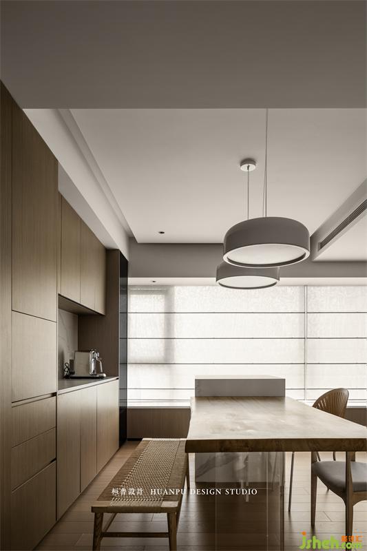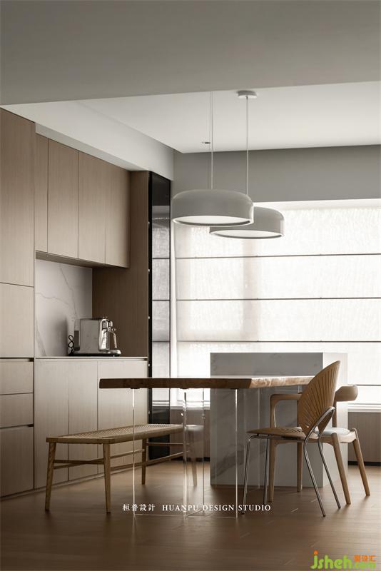 餐廳區(qū)域設(shè)置西廚功能,正面高柜提高收納空間的同時,備餐更便利。