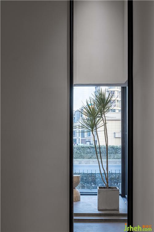 方正的室內(nèi)場(chǎng)地提供了更多有關(guān)于塑造的可能性,設(shè)計(jì)師梳理出清晰的空間邏輯,充分利用每一個(gè)平面,讓不同型號(hào)與用途的門窗去回應(yīng)場(chǎng)所的特定氛圍。粗糙的場(chǎng)地環(huán)境與潔白的建筑主體相互依托,質(zhì)感分離,傳達(dá)出抽象的美學(xué)隱喻,演繹出后現(xiàn)代主義建筑的純凈。