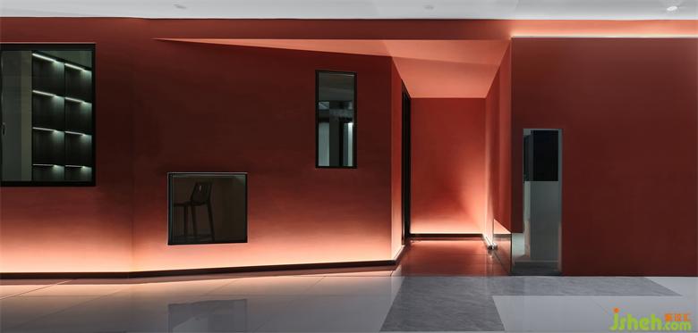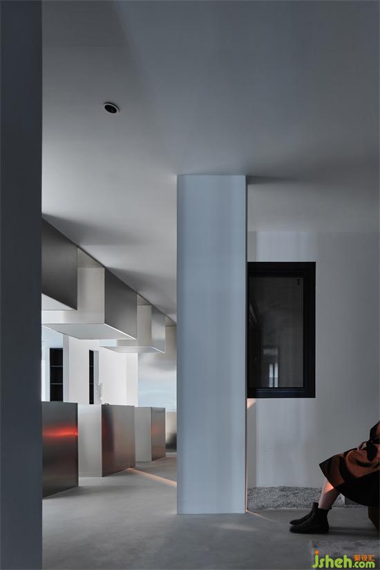 巨幅窗景,巨大的開放式島臺,作為靈活性最強(qiáng)的空間,承擔(dān)著聚會、活動等多重功能,為每一種可能提供恰切相宜的舞臺。系統(tǒng)門窗展廳設(shè)計(jì)凹槽,切角,不規(guī)則的穿插裝置,實(shí)現(xiàn)了空間層次、景別的遞進(jìn)式韻律,一種關(guān)注精神性、注重流動感的設(shè)計(jì)語匯在此形成。