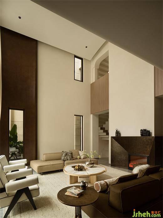 重慶別墅裝飾重新構(gòu)思起居廳布局,讓人坐在觀景自然里。會(huì)客廳、 餐廳、 廚房、 收藏陳列,一層空間 “公共”又“集體”,大家一起進(jìn)行公共活動(dòng),可以選擇在餐桌上與家人舉杯換盞時(shí)交換意見(jiàn),可以在沙發(fā)與同伴竊竊私語(yǔ)。