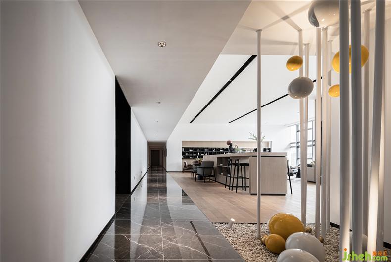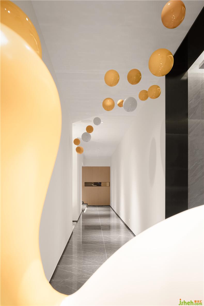 巖石擁有了被時光打磨的形狀,與一抹明黃的亮色為敘事旁白,與前廳的泡泡相呼應(yīng),裝修設(shè)計空間尺度之間蘊(yùn)藏著微妙的平衡。