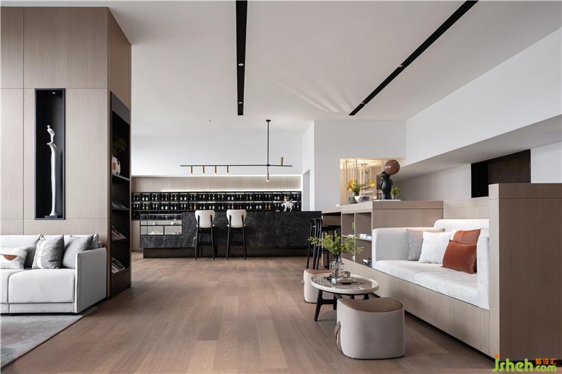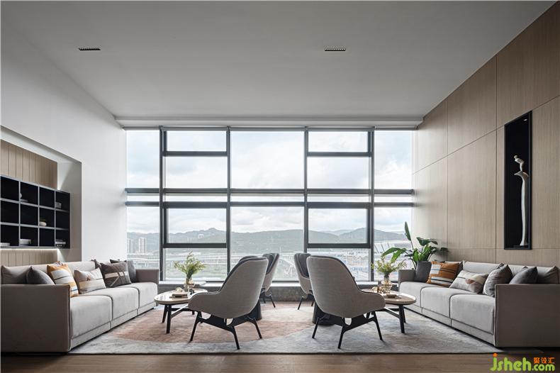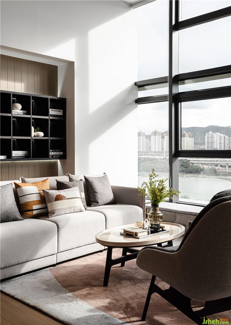 無(wú)論外界如何變幻,都可將自然的靜美攬入懷中。開(kāi)放式的場(chǎng)域搭配大面積的玻璃窗,坐在沙發(fā)上,裝修設(shè)計(jì)便能欣賞到窗外的白龍?zhí)毒吧?,自然光流瀉增強(qiáng)空間的舒朗氣度。