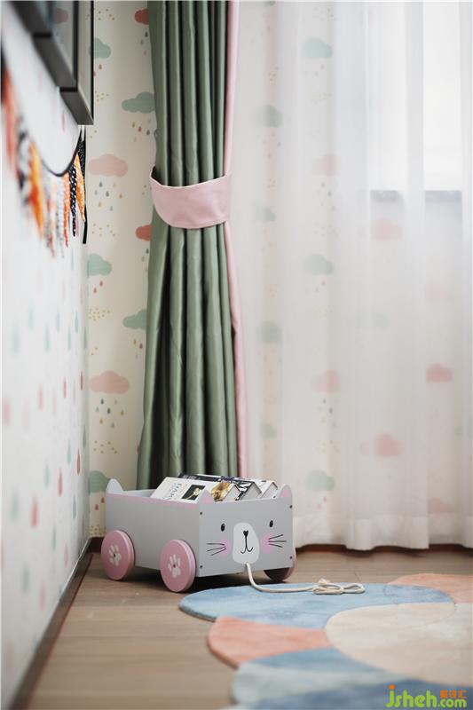 女兒乖巧可愛,是爺爺奶奶開心果,房型床是他們給她最好的保護(hù),一個(gè)屬于她一個(gè)人的空間;星星月亮只屬于她一個(gè)人,床上都是她喜愛的樣式抱枕。樣板房設(shè)計(jì)