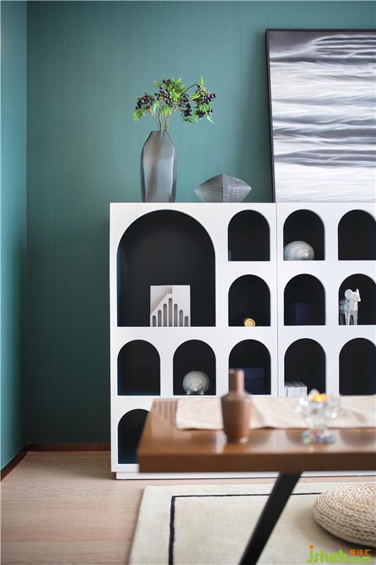 安靜中帶著禪意,是爸爸最愛呆的地方,每天都會(huì)花上幾個(gè)小時(shí)在這里,寫字閱讀思考,斗柜里都是父母外出旅游帶回來的紀(jì)念品,柜子上的靠畫也是父親的攝影作品,雖然空間里有不同的符號(hào),但并不影響它的協(xié)調(diào)和平靜。