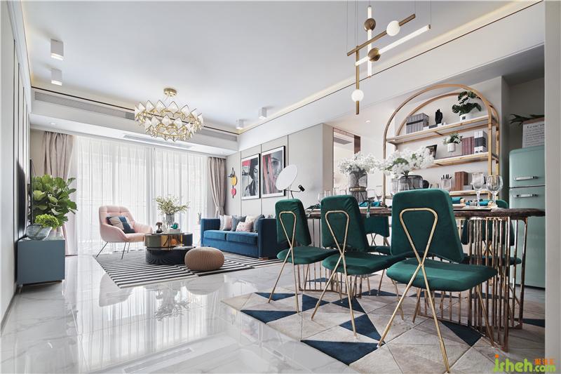 灰白色色調(diào)基底色,將有溫度的設(shè)計融入西方的文化理念,結(jié)合豐富的色彩藍(lán)色,綠色,粉色,紅色,金色等結(jié)合,一覽無余的色彩盛宴。裝修公司