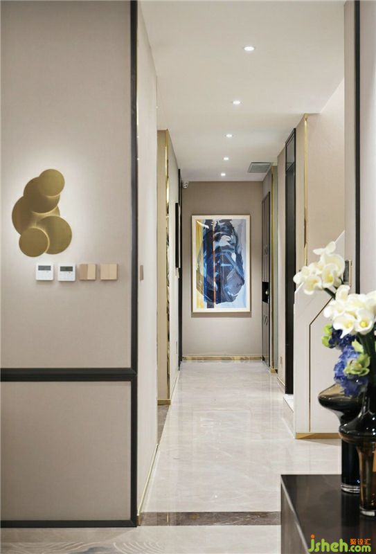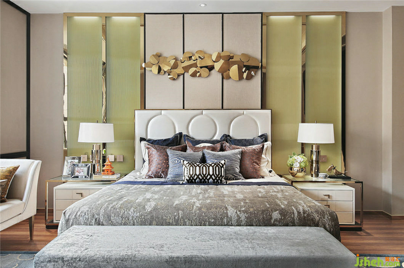 色彩鮮明的壁畫組合為奢華的空間之中增添了更多的藝術(shù)氣息,柔和的質(zhì)感中和了金屬、瓷磚的冷硬,帶來更舒適的審美享受。樣板房設(shè)計