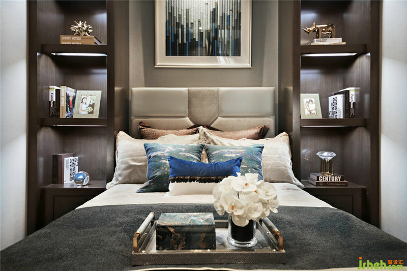 屋內(nèi)的各種擺飾讓臥室氛圍生動(dòng)活潑不少,床頭的金屬材質(zhì)飾品更是帶來了靈動(dòng)的氣息。樣板房設(shè)計(jì)