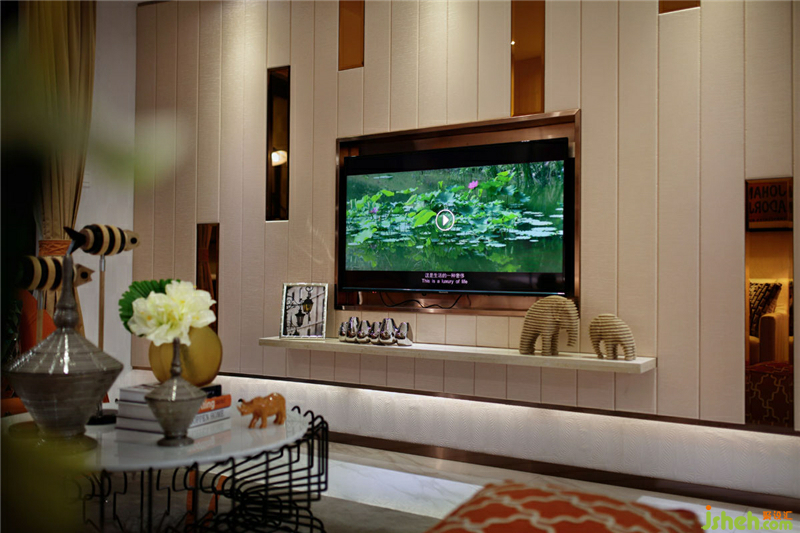 獨特品味的掛畫、流行服飾,各就其位,從中體現(xiàn)出主人公職業(yè)的特性。凝聚金屬光澤的現(xiàn)代裝飾和時尚前衛(wèi)的家俱,裝飾元素的不斷呼應和延續(xù)令整個空間在變化中擁有統(tǒng)一的特質(zhì),時尚的氣息無處不在。