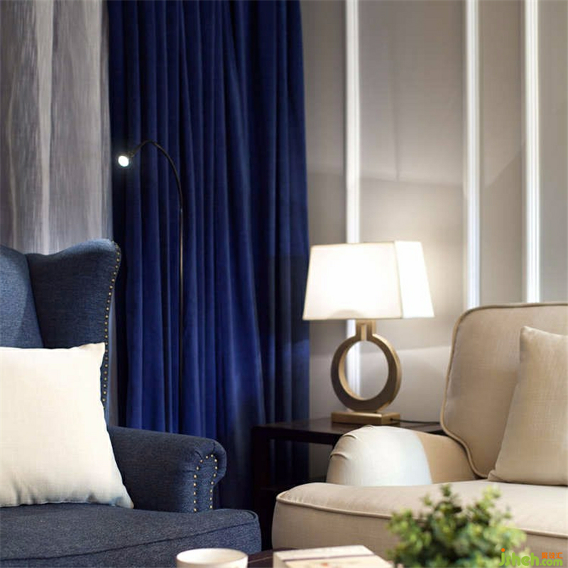 簡(jiǎn)潔居家,空間主體以白色為主,藍(lán)色抱枕,窗簾,邊椅正好做為點(diǎn)綴。室內(nèi)設(shè)計(jì)師