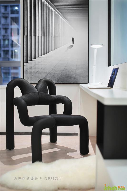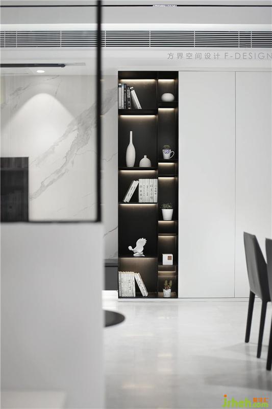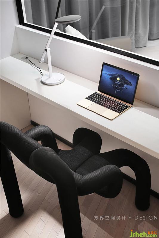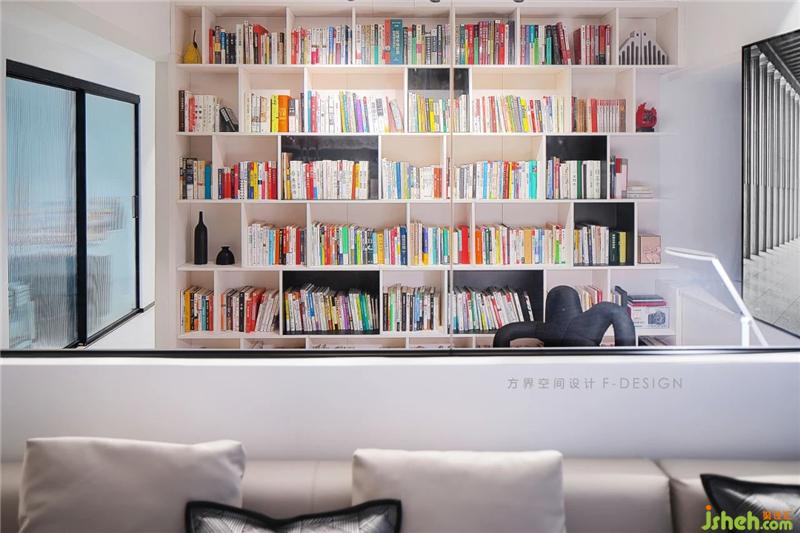 書房與客廳互通,客廳的采光被巧妙的利用起來,通過透明的隔窗照射進來,整個書房采光充足,舒適溫馨。室內(nèi)設計師