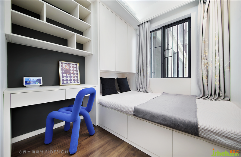 兒童床選擇的是上下鋪,休憩與娛樂空間結(jié)為一體,在床下方玩玩具、閱讀繪本,那是獨屬于小主人公的“秘密基地”。室內(nèi)設(shè)計師