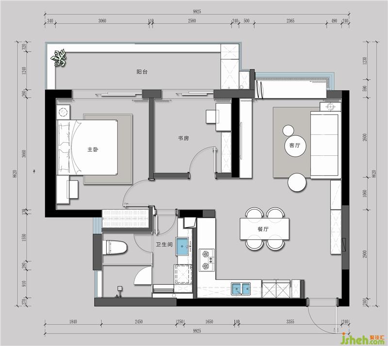 書房,避開外界的喧囂,不似臥室的慵懶,精神處在恰到好處的清醒當(dāng)中。設(shè)計(jì)了整面書柜,增加收納空間,在里面擺上自己喜歡的物件,發(fā)呆、聽音樂、打打游戲都是幽然自在。