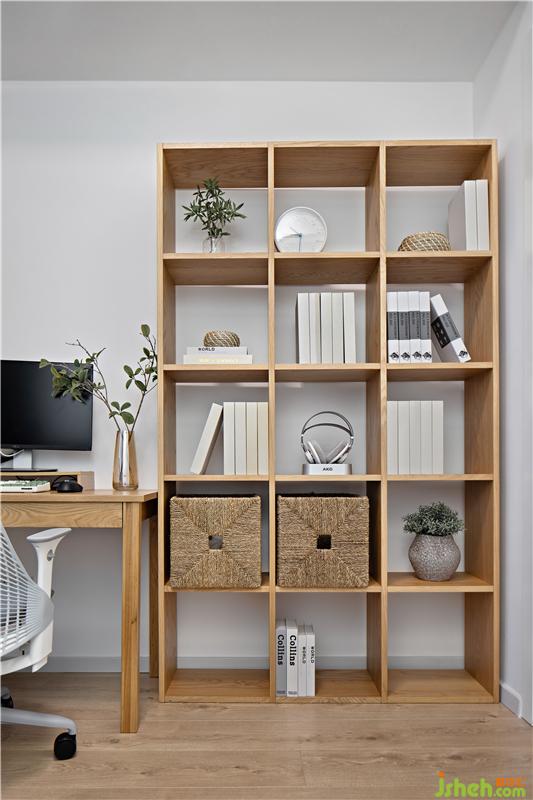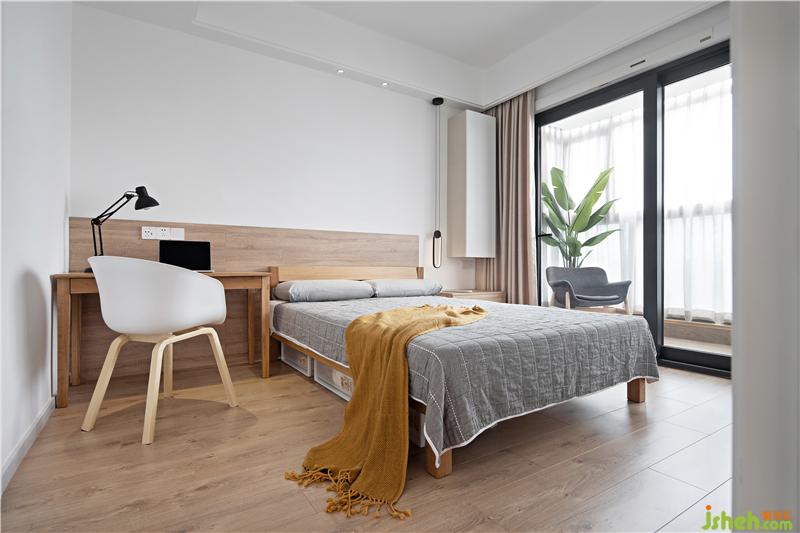 主臥,家具也都是延續(xù)了客餐廳的原木風格,搭配溫柔的灰色,大面積留白,使臥房更加溫潤明亮,營造理想的睡眠環(huán)境;整面的儲物柜保證房間的干凈整潔。