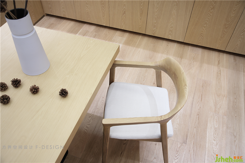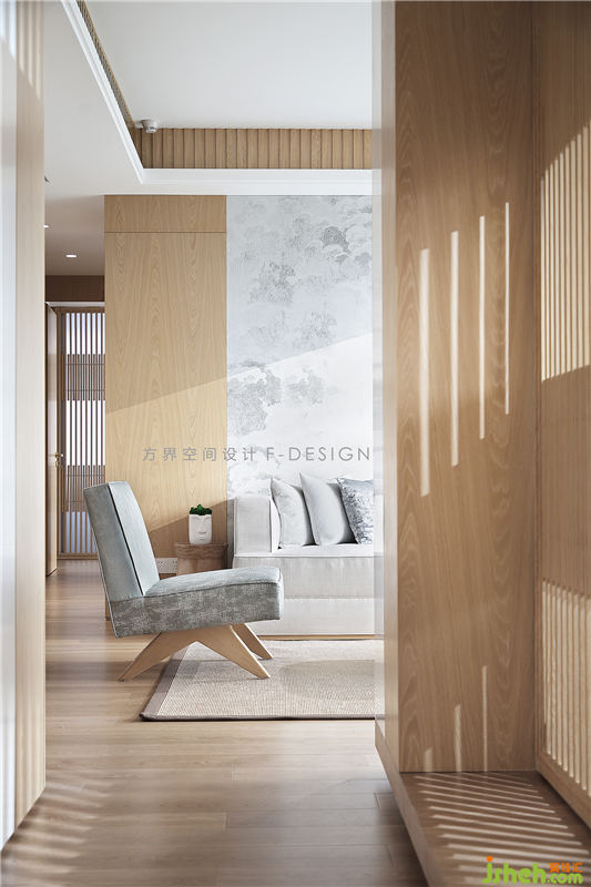 空間大量的原木元素營(yíng)造出純粹、寧?kù)o、詩(shī)意的居住環(huán)境。