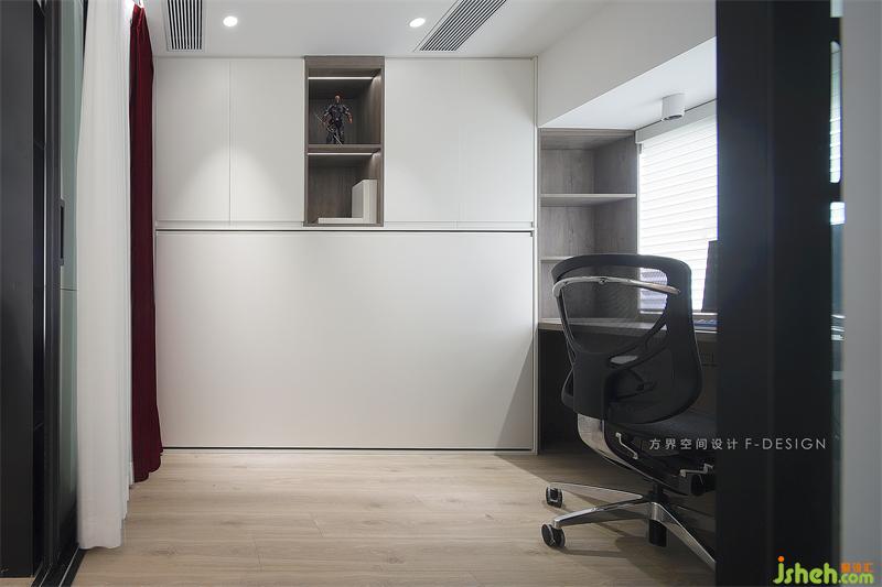 開放式的收納適合收納手辦,工藝者擺放工藝作品。收納下方做一張隱形床,家里來朋友留宿房間不夠的時(shí)候可以放下來使用。