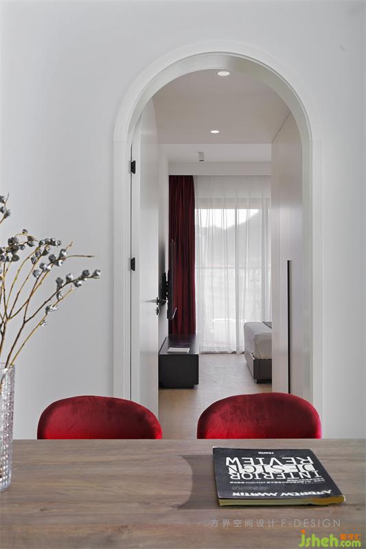 臥室門設(shè)計(jì)成了拱形門,與線條筆直的傳統(tǒng)建筑語言不同,拱形門就是空間里美妙的弧線,修長的拱形門在視覺上有垂直的拉伸感。擁有一種和諧、莊嚴(yán)的感覺,而且其弧線的協(xié)調(diào)往往能帶來一種獨(dú)特的、百看不膩的永恒美感。使室內(nèi)空間通透而又有層次感采光能力也進(jìn)一步加強(qiáng)。