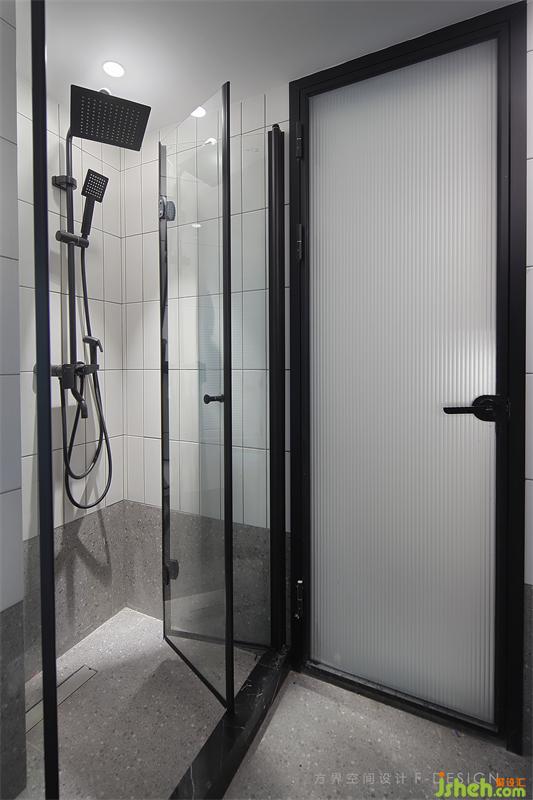 水磨石和小白磚的和諧搭配,香格里拉簾隱秘又確保光線明亮。狹小的空間很容易潮濕,利用門開到九十度的后方空間做干濕分離,家居裝修搭配的智能毛巾架(帶有烘干等功能)和智能馬桶(全自動(dòng))都能保證空間的干燥性。