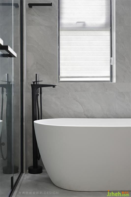 簡約的白色搭配了黑色的邊,最經(jīng)典的黑白色系打造了浴室的大方簡約與純粹。
