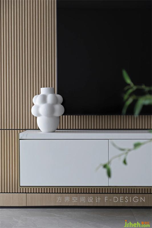 電視背景墻定制了一面的格柵墻雅致別韻,掛壁的電視柜用雅白石材和不銹鋼金屬相退互碰撞,讓整個(gè)空間都有個(gè)銜接。