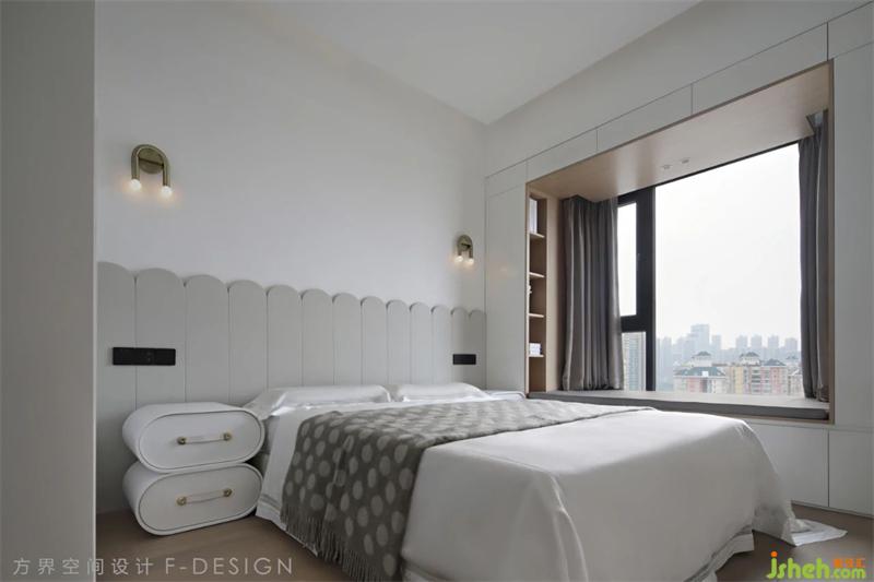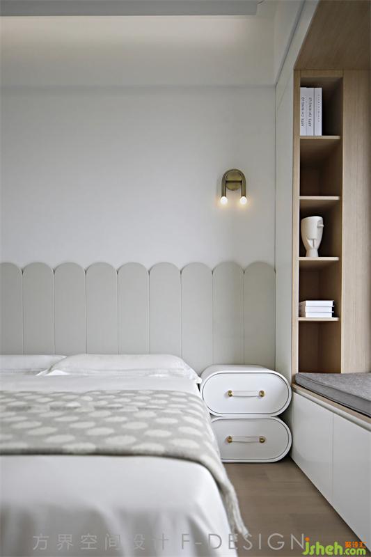 衣柜門(mén)圓弧形造型與床頭靠背呼應(yīng),圓與圓之間的相互碰撞。