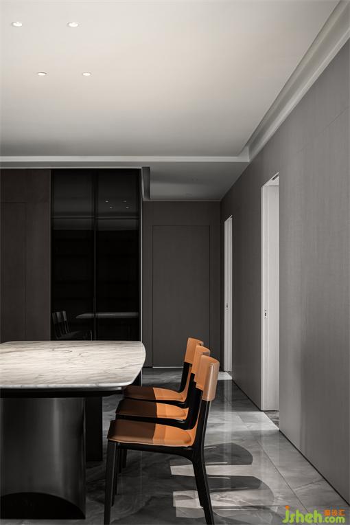 惠州私宅設計優(yōu)雅有型的尊貴質感搭配大理石的自然紋理兼具藝術美感,金屬質感桌腿更為堅實穩(wěn)固。