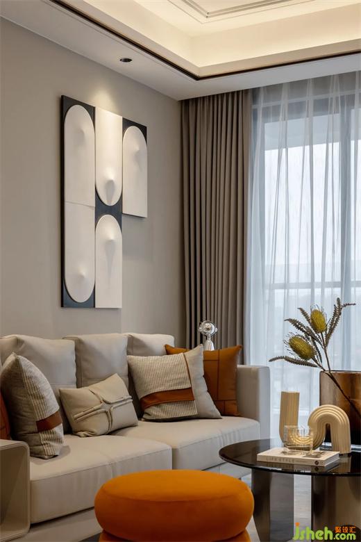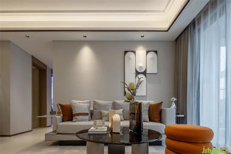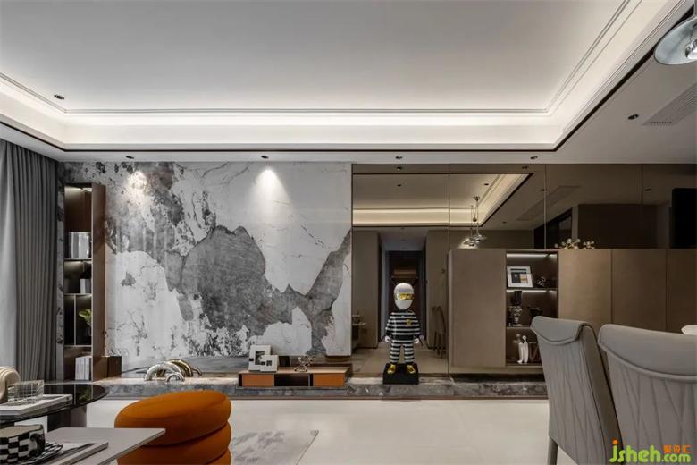 簡潔的線條,干凈沉穩(wěn),水墨紋理大理石柜面溫潤質(zhì)感,德威樣板房設(shè)計將客廳變成一座博物館,出入即是一種專屬的藝術(shù)享受。