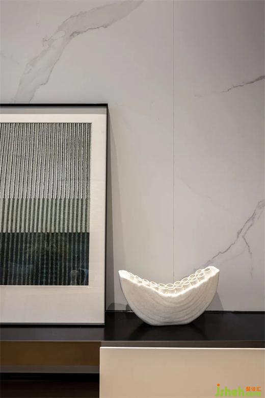 德威樣板房設計簡約的線條勾勒出雅致舒適的生活哲學,皮質上乘、細膩柔軟,肌理層次豐富帶來意想不到的美感與觸感。