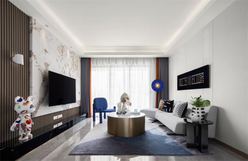 在德威江譽城,設計采用了現(xiàn)代簡約風格的樣式,會客廳設計以灰色、白色、黑色等中性色為主,配以一些時尚的色彩,讓整個空間顯得干凈、整潔,同時又不失時尚感和溫馨感。