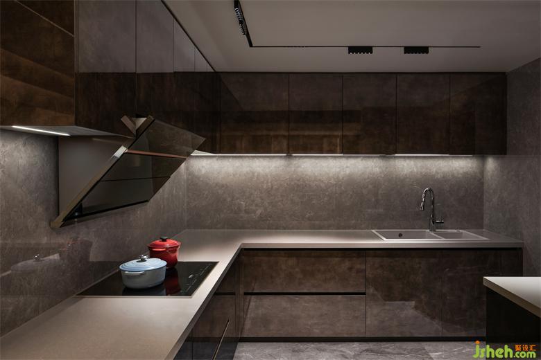 毗鄰的開放式餐廳空間,與廚房空間整體融合,TRID添睿室內(nèi)設(shè)計(jì)視覺上拉長空間的感官,相對(duì)獨(dú)立的空間裏,優(yōu)美的圓弧線帶來一種柔性之美。