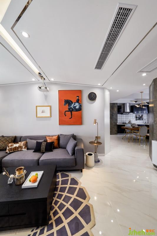 客廳是家里的中心地帶,用100寸的投影幕布代替電視機,考慮到看電影會比較舒服,以后有小孩了看幕布也不會傷害眼睛。