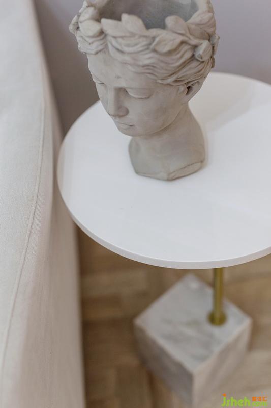 灰色主調(diào)的素雅與少女粉的跳脫,柔軟軟裝與利落三角形造型,玻璃吊燈與綠植的點綴,交織出美觀而質(zhì)感視覺,描繪出愜意舒適的居家品位