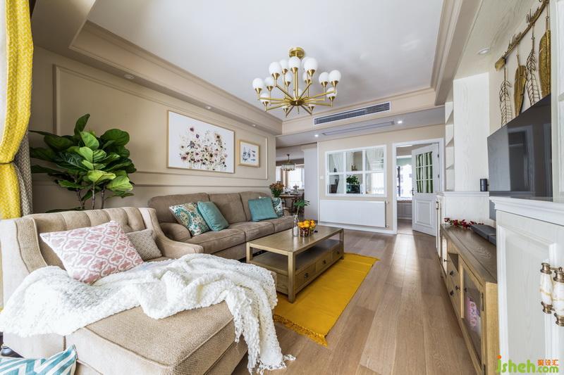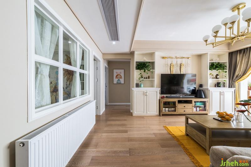 客廳延續(xù)簡(jiǎn)單大方的美式格調(diào),在家具材質(zhì)及顏色的挑選上下足功夫,看似不經(jīng)意,卻又和諧無比,連通陽臺(tái)引入陽光,使采光充沛,配以綠色植物,讓整個(gè)空間充滿勃勃生機(jī)。