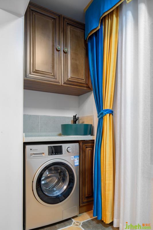 與客廳相連的陽臺(tái),可以說是一個(gè)非常有心意的設(shè)計(jì)了!除了洗衣機(jī),還設(shè)置了單獨(dú)的洗手盆,可以洗滌小件衣物。頭頂?shù)牡豕?,輕松搞定陽臺(tái)收納!