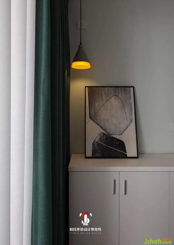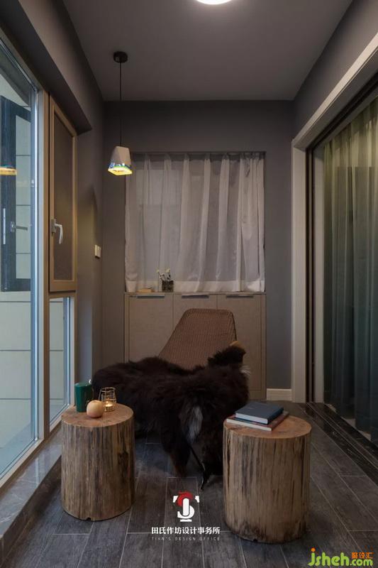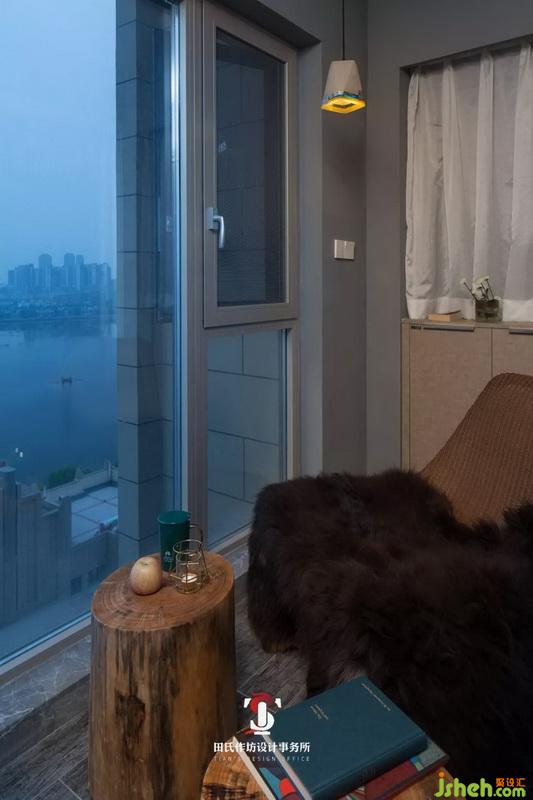 7米長(zhǎng)的陽(yáng)臺(tái)連通客廳和主臥,延續(xù)室內(nèi)空間的視覺風(fēng)格,白框的線條讓整個(gè)空間都得到了統(tǒng)一。往窗外看去一眼就能看到整個(gè)南湖的風(fēng)景,自然景致因此探進(jìn)溫暖的屋子?!霸改闳?,愿你春不寒,繁華落幕,我伴你落日流年”景觀陽(yáng)臺(tái)變成像沙灘般輕松愜意的度假地。