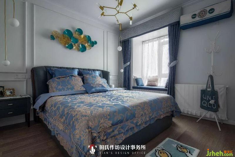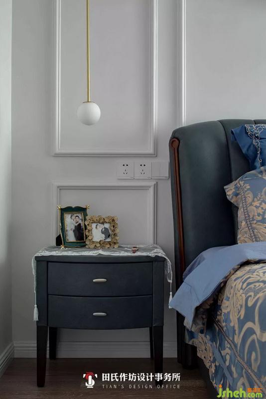 藍(lán)色緞面和金色花紋的床品給整個(gè)房間帶來了大氣,清新之感,也讓業(yè)主住的更加舒適放松。