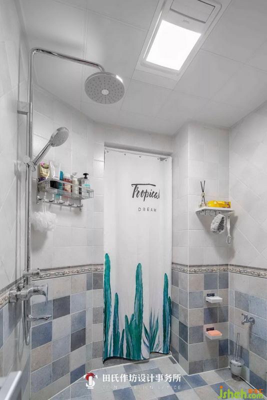 衛(wèi)生間做了干濕分區(qū),衛(wèi)生間與設(shè)備平臺(tái)的墻體打掉這樣咱們可以利用一部分設(shè)備平臺(tái)的空間來當(dāng)做洗衣區(qū),同時(shí)還有一部分可以歸納到廚房來加長(zhǎng)廚房的臺(tái)面。灰、藍(lán)、米白的瓷磚給原本單調(diào)的衛(wèi)生間帶來了色彩的活力。