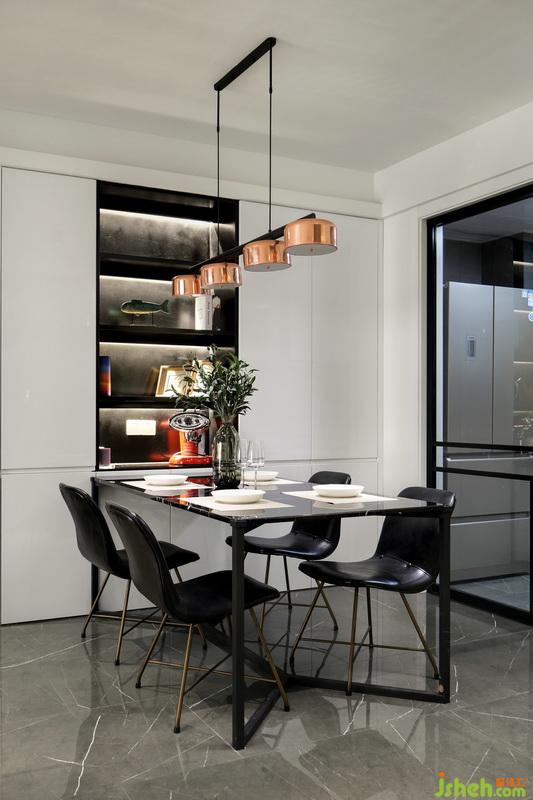 ▲室內(nèi)空間被室內(nèi)設(shè)計(jì)師巧妙劃分利用,公共區(qū)域以開(kāi)放式的布局進(jìn)行呈現(xiàn),保證了光線自由穿梭,黑白灰的色彩搭配,也是充滿經(jīng)典與時(shí)髦感的。