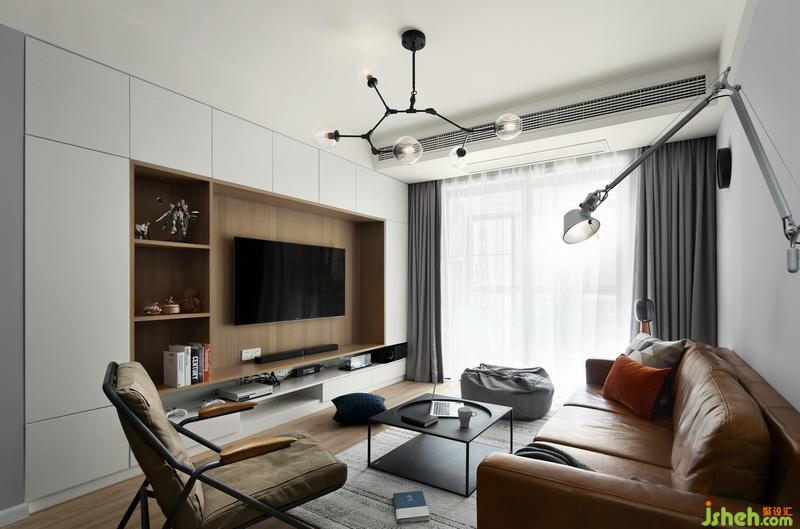 ▲客廳空間是一個(gè)閑適的休息區(qū),這里盡情接受著來自大自然的光線賜予,并充分利用木元素,營造出一個(gè)可以卸下疲憊的放松空間。整面儲物柜大大提升了整個(gè)空間的利用率,營造出清爽潔凈的視覺效果。