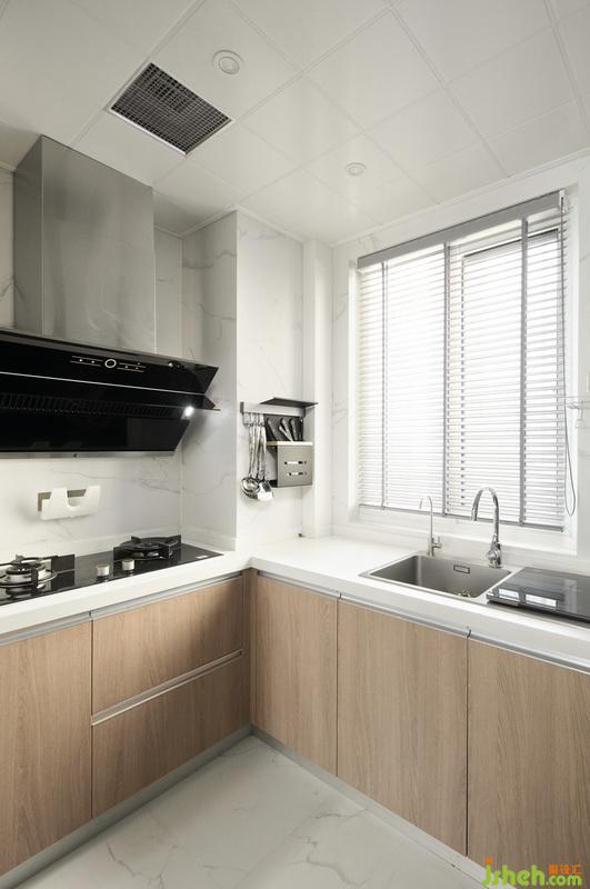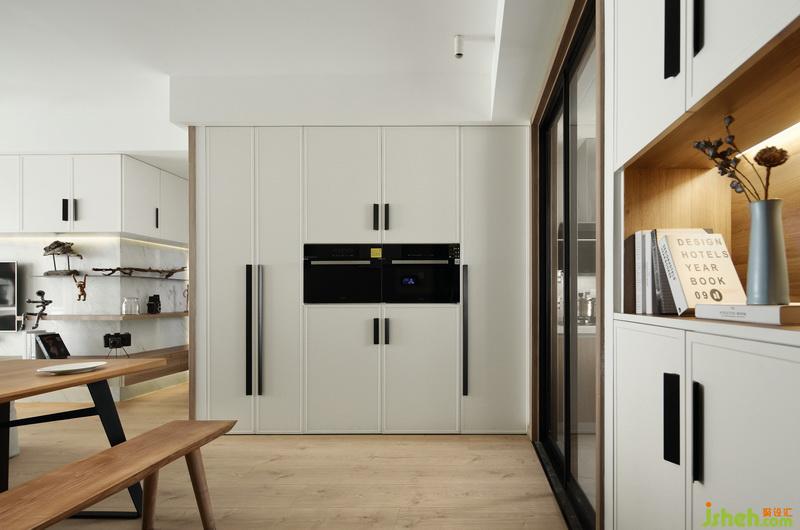 ▲廚房區(qū)域是明亮而通透的,白凈的基底下,木色櫥柜是簡約而質(zhì)感的,簡單卻鮮明的色彩搭配,帶來潔凈的視覺效果。