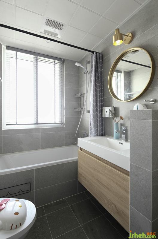 ▲洗浴室的墻地滿貼灰磚,浴室柜與全屋色調(diào)統(tǒng)一,而壁燈與鏡子黃銅元素的加入更是為這個區(qū)域帶來層次感。而現(xiàn)砌的半高隔斷墻不僅可以放置洗漱用品,也可起著一些遮蔽作用。設(shè)計與生活往往是相輔相成的。