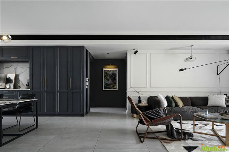 沙發(fā)背景一側(cè)是通往兩個(gè)臥室的小過道,采用了和柜體門板同色的灰色作為背景色,和左側(cè)的柜子行程整體的統(tǒng)一性!加以裝飾畫做點(diǎn)綴,將客廳和餐廳的空調(diào)放在同側(cè),用黑色加長(zhǎng)風(fēng)口作為貫穿,延長(zhǎng)了客餐廳的人視覺空間!