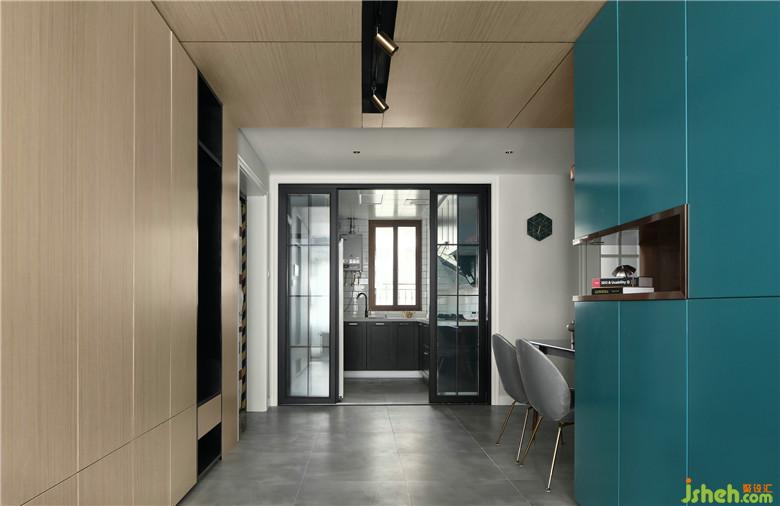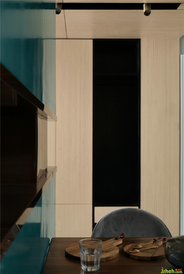 ▲在進(jìn)門一眼望過去的盡頭配以精心挑選的裝飾畫,輔以射燈,在入戶處便能感受到整個空間的設(shè)計理念,輕松悠然,卻也精致靈動。右側(cè)的鞋帽柜其中室內(nèi)設(shè)計師增設(shè)了抽屜式換鞋凳,讓屋主回家或出門時不必彎腰,很是貼心的小細(xì)節(jié)設(shè)計。而木質(zhì)元素從空間立面一直延伸到頂部,使這片場域形成整體功能區(qū)。