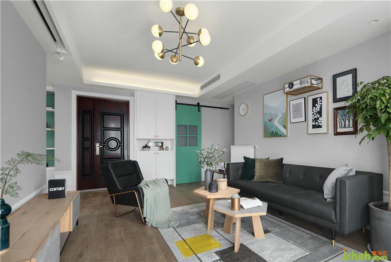 ▲將原戶型陽臺并入客廳擴大區(qū)域,也增加了客廳的采光使之更通透溫暖。室內(nèi)墻體以淺灰色為底,室內(nèi)設(shè)計師以深色家具作為重色壓住整個空間,將屋主喜愛的綠色貫穿到室內(nèi)裝飾上,裝飾畫、抱枕亦或是窗簾,都與全屋和諧的搭配著。