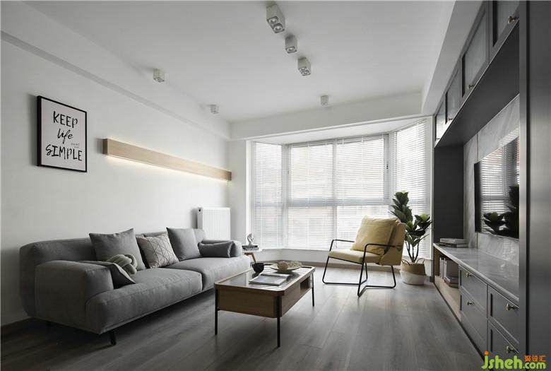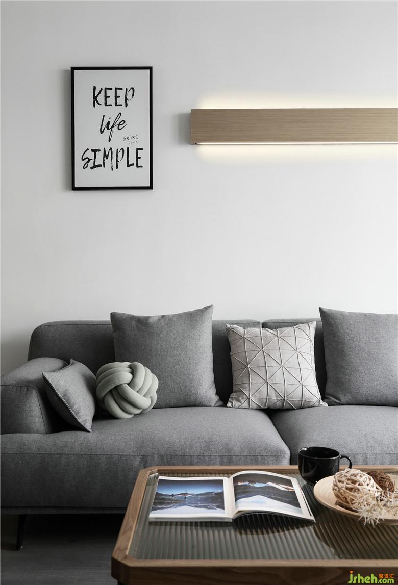 ▲沙發(fā)背景墻則以一幅簡(jiǎn)約的裝飾畫和裝飾嵌入燈條作為最終呈現(xiàn),恰到好處的留白讓空間通透。